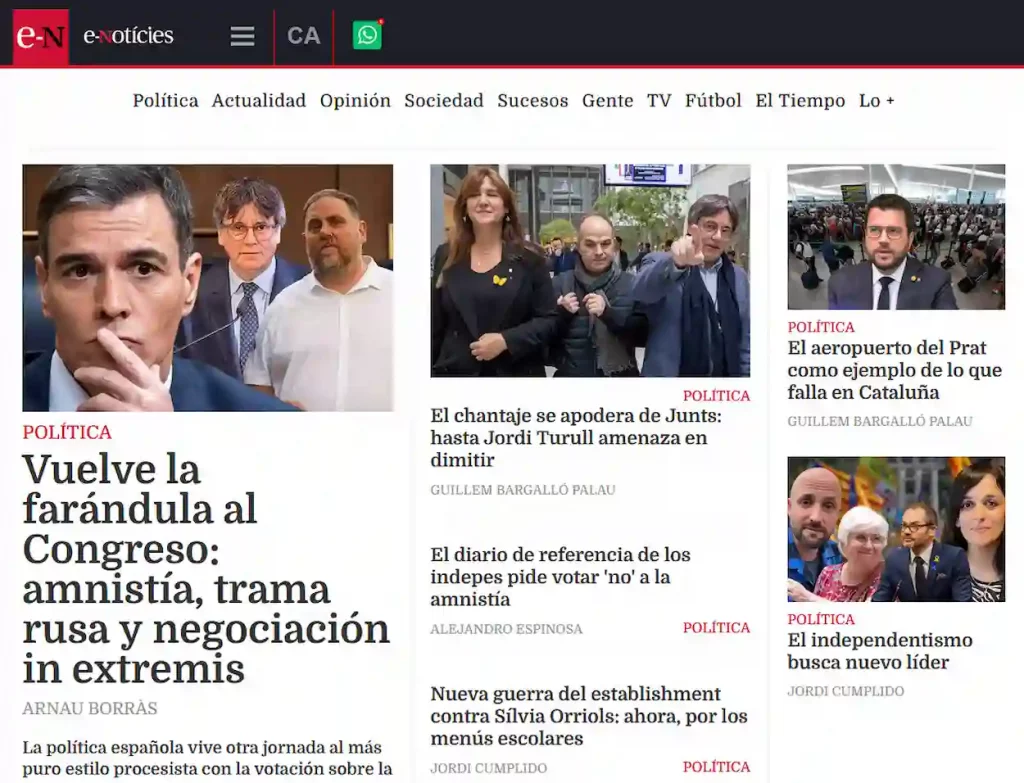Portada del medio de comunicación E-noticies en su versión en castellano