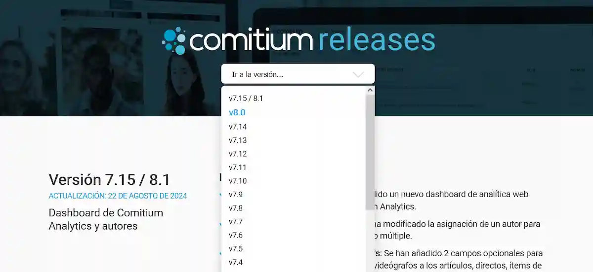 Hace unos días os informábamos de una nueva actualización de Comitum, la 8.0, hoy volvemos con una nueva ronda de novedades recogidas ahora en las versiones  7.15.0 y 8.1.0. Ambas destacan principalmente por la reintroducción de Comitium Analytics y la novedad de Comitium Advertising, entre otras.
