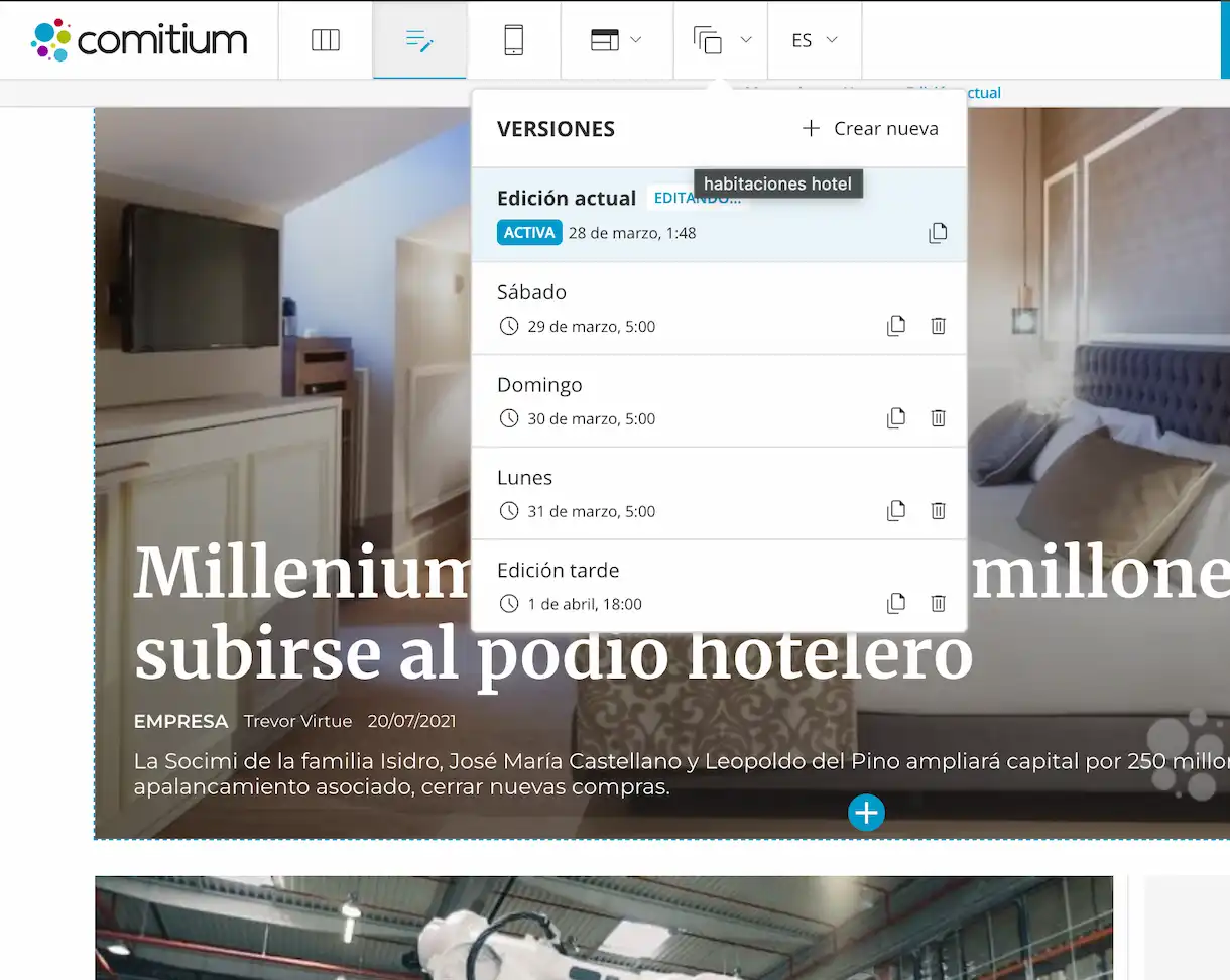 Aquí es donde herramientas especializadas, como el Editor Visual de portadas y páginas de Comitium, intentan marcar la diferencia. Comitium permite a los medios digitales modificar su portada en tiempo real sin necesidad de manejar código y asegurando rapidez y precisión en cada actualización.
