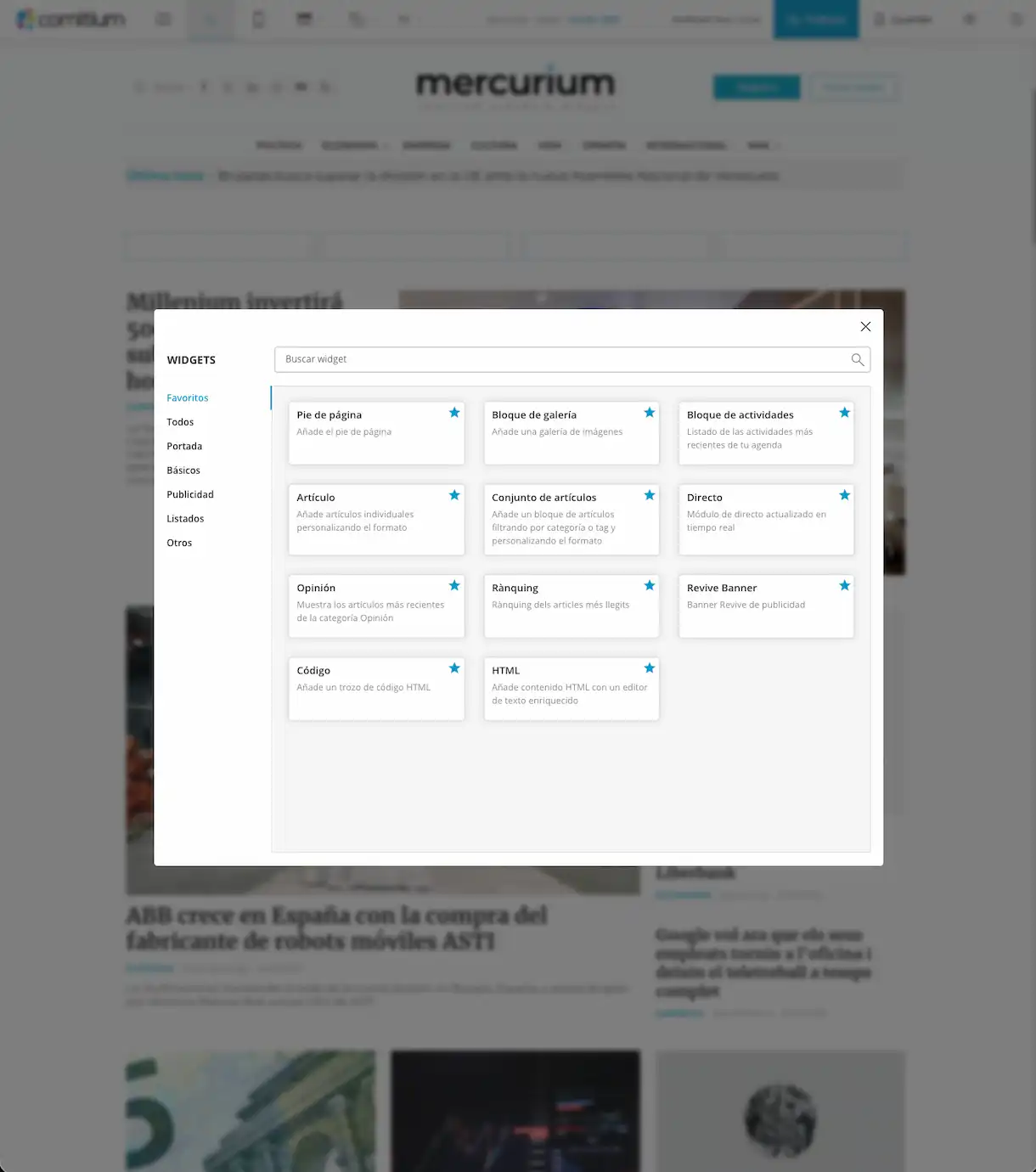 Implementación de widgets: Facilidad en la creación de nuevos widgets o modificaciones de los existentes junto a sus parametrizaciones para definir comportamientos concretos para adaptar la lógica a las necesidades de cada medio de comunicación.