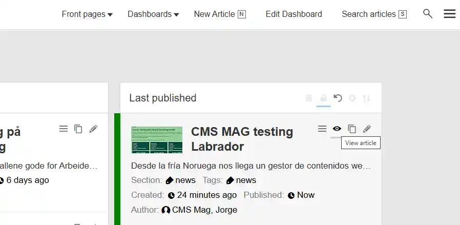 En este sentido se parece bastante a los “page builders” más modernos, incluyendo el editor de bloques de WordPress, si bien este sistema de Labrador CMS están 100% adaptado a periódicos y revistas y cuenta con los bloques o módulos precisos. Demasiada variedad y posibilidades de elección en este sentido en un periódico a veces son contraproducentes por diversas razones.