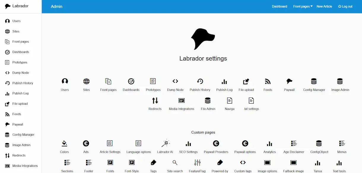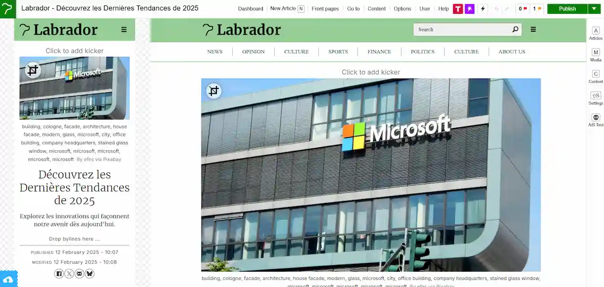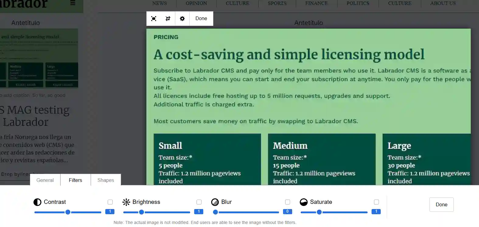 Los medios de comunicación más humildes pueden usar la aplicación de frontend que proporciona Labrador y usarlo, de hecho, como si fuera un CMS monolítico tradicional y, más adelante, ya aprovechar todas las ventajas de los CMS headless a medida que van creciendo.