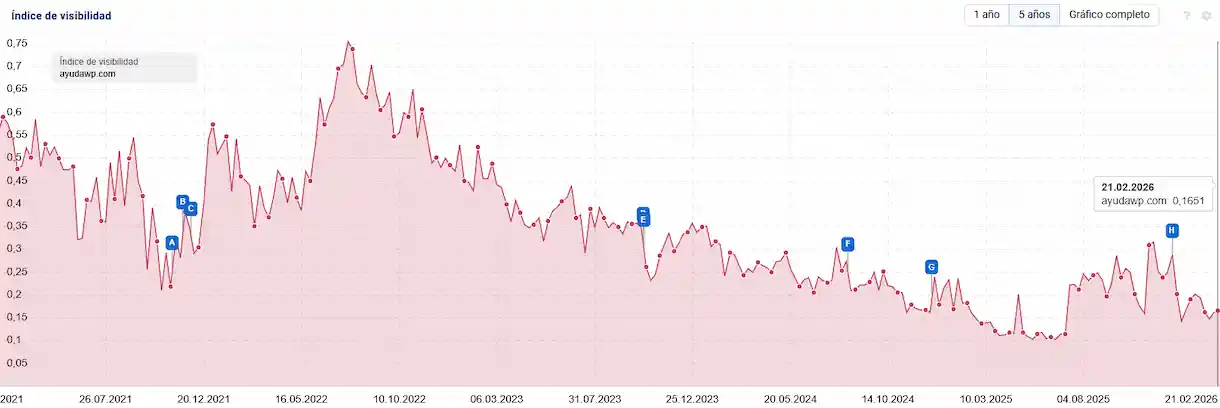 CMS MAG también cuenta con un índice de visibilidad mayor que la legendaria web de WordPress AyudaWP:
