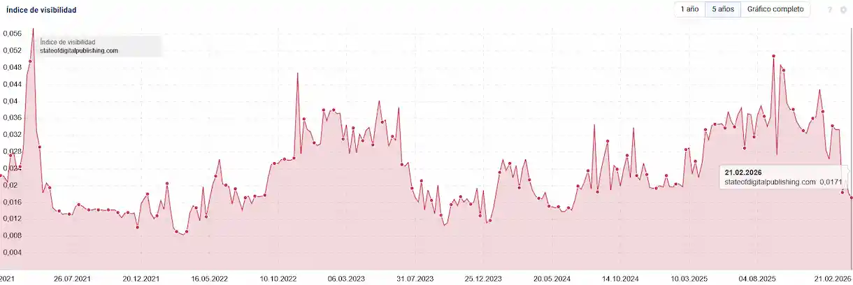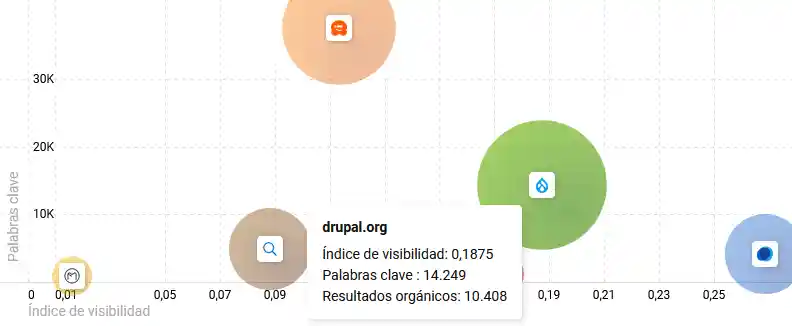 Puede no parecer un índice demasiado alto, pero vamos a ver que sí lo es teniendo en cuenta que informar sobre un nicho realmente reducido, el de los profesionales de los contenidos y la información que buscan cambiar de CMS. Por poner el dato en contexto, CMS MAG cuenta con un índice de visiblidad en España similar al del propio Drupal, que es uno de los gestores de contenidos web más populares del planeta.