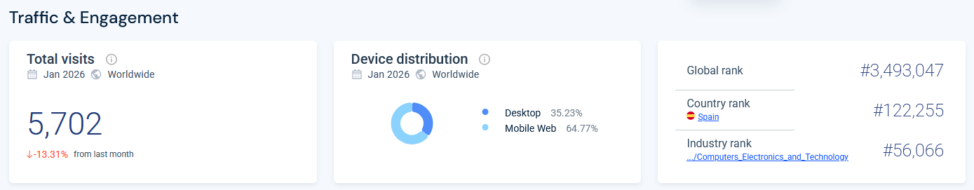 Pero podemos aportar más datos de tráfico, esta vez de Similarweb, quienes nos atribuyen correctamente más de 5.000 usuarios mensuales