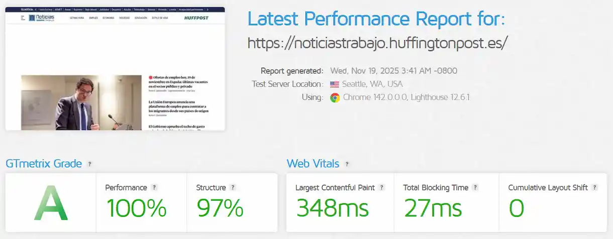 Las buenas noticias hay que difundirlas y, sobre todo, celebrarlas. Eso es lo que ha hecho Francisco Javier Miralles Niño, Responsable Seo y Audiencias en Noticiastrabajo Huffpost, en LinkedIN al revelar que por fin el medio en el que trabaja, Noticiastrabajo, que forma parte del Huffpost del grupo PRISA, ha lanzado un nuevo CMS que destaca sobre todo porque funciona a la velocidad de la luz gracias a una serie de características que os relato a continuación.