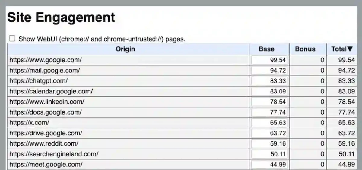 Pues resulta que sí. Para comprobarlo solo tienes que abrir tu navegador Google Chrome y escribir en la barra de navegación, como si fuera una url cualquiera, el siguiente texto: chrome://site-engagement/ Acto seguido podrás ver el engagement o tu fidelidad con respecto a las páginas web que navegas.