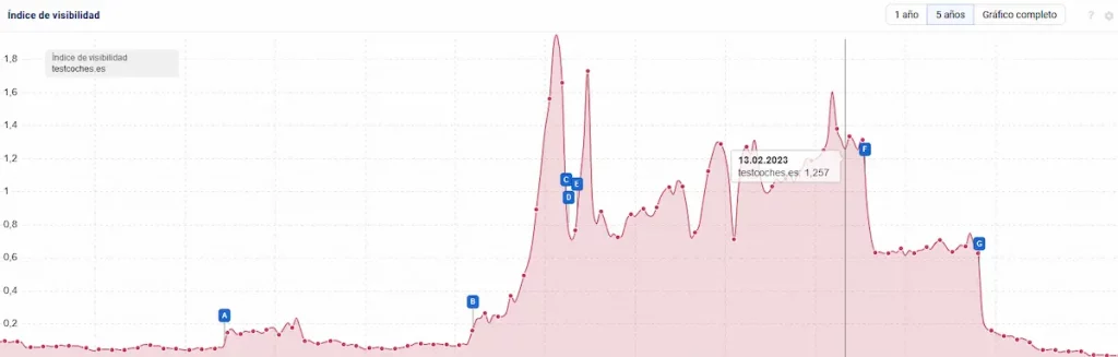 El site gozó de cierta popularidad a partir de 2022, pero en 2023 se ha visto afectado por todos y cada uno de los principales updates de Google en lo que puede ser un buen caso de estudio para un buen SEO que haga de forense.