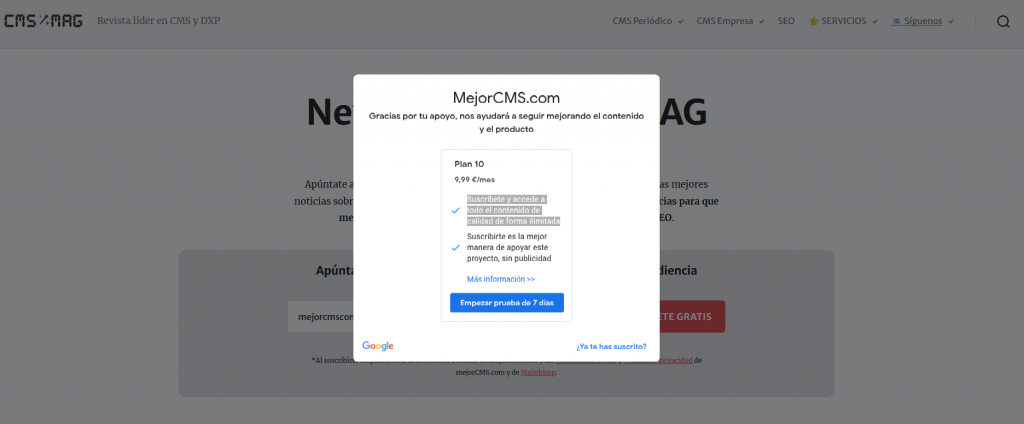 Me planteo el uso de Google Revenue Manager más como una forma de conseguir leads para el boletín semanal y una forma de restringir el contenido. Entiendo que pagar, solo pagarán unos pocos, pero tampoco es el objetivo.