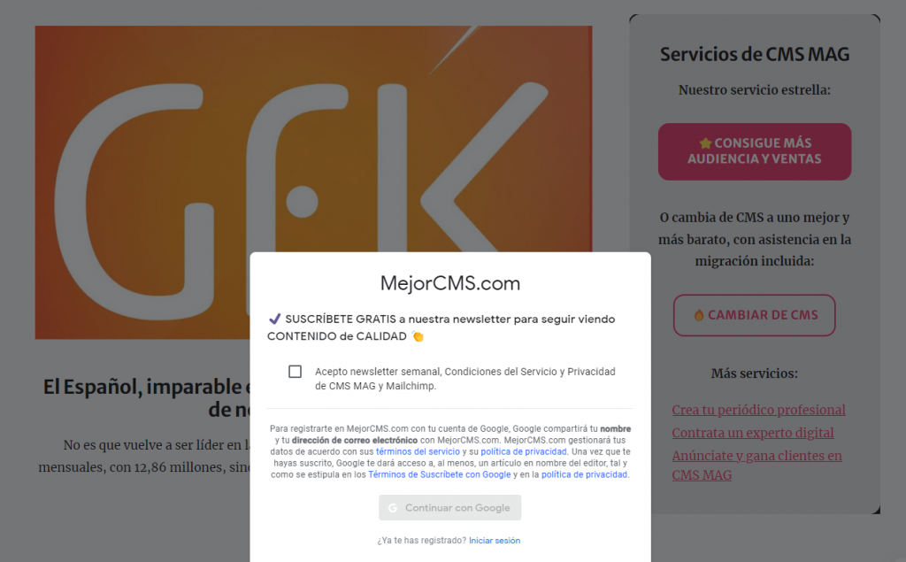 Al suscribirte, confirmas que aceptas recibir la newsletter semanal de mejorCMS.com y las Condiciones de uso y Política de privacidad de mejorCMS.com, así como las de Mailchimp.