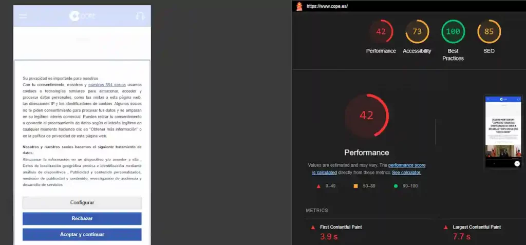 La web está perfectamente operativa y es usable, pero parece que aún le queda labor después del lanzamiento en forma de desarrollo evolutivo. Las primeras mediciones de velocidad no son todo lo buenas que deberían probando con Lighthouse y GTmetrix.